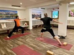 Starten Sie entspannt in den Tag: Unser Chef, ausgebildeter Yogalehrer, lädt Sie 2–3 Mal pro Woche zu einer morgendlichen Yogaeinheit ein.